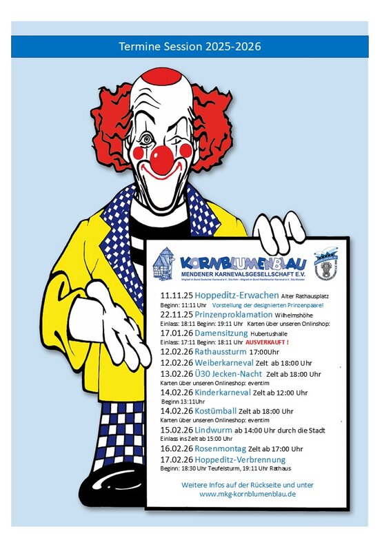 Hier gibt’s alle Infos zur aktuellen Session, zu den vielen Aktiven der Kornblumenblauen, sowie zur Geschichte der MKG und vieles mehr.